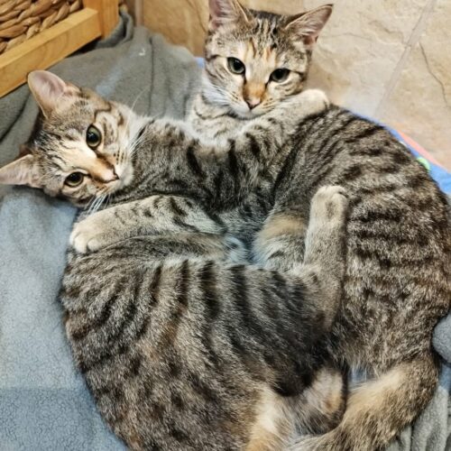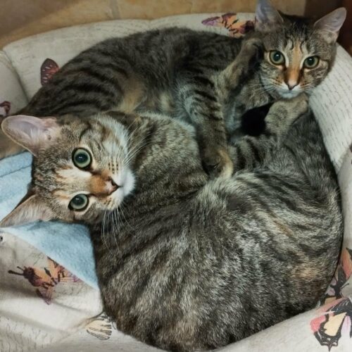 Solitamente non proponiamo adozioni esclusivamente di coppia, ma queste due gattine si vogliono troppo bene per venire separate: Trilly, con il suo adorabile nasino arancione, e Ary, leggermente più grande e con lo sguardo sempre attento e curioso. Queste due gattine sono state trovate in un cortile a Pino Torinese, dove vivevano da piccoline allo stato selvatico. Purtroppo la loro sorellina non ce l’ha fatta, travolta da un’auto il giorno prima del salvataggio… capite perché la sterilizzazione salva vite? Perlomeno loro due hanno avuto un pizzico di fortuna in più. Con tanta pazienza e amore stanno imparando a fidarsi: la sera diventano delle vere coccolone, si rilassano e si lasciano accarezzare con dolcezza, facendo le fusa. Prima vivevano in stallo, ora sono in gattile. Hanno 6 mesi e l’unica cosa che manca loro è una famiglia che le ami.